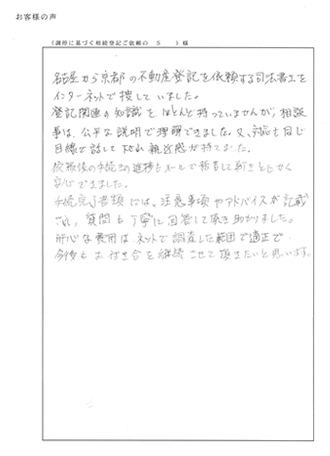 名古屋から、京都の不動産登記を依頼する司法書士をインターネットで探していました。